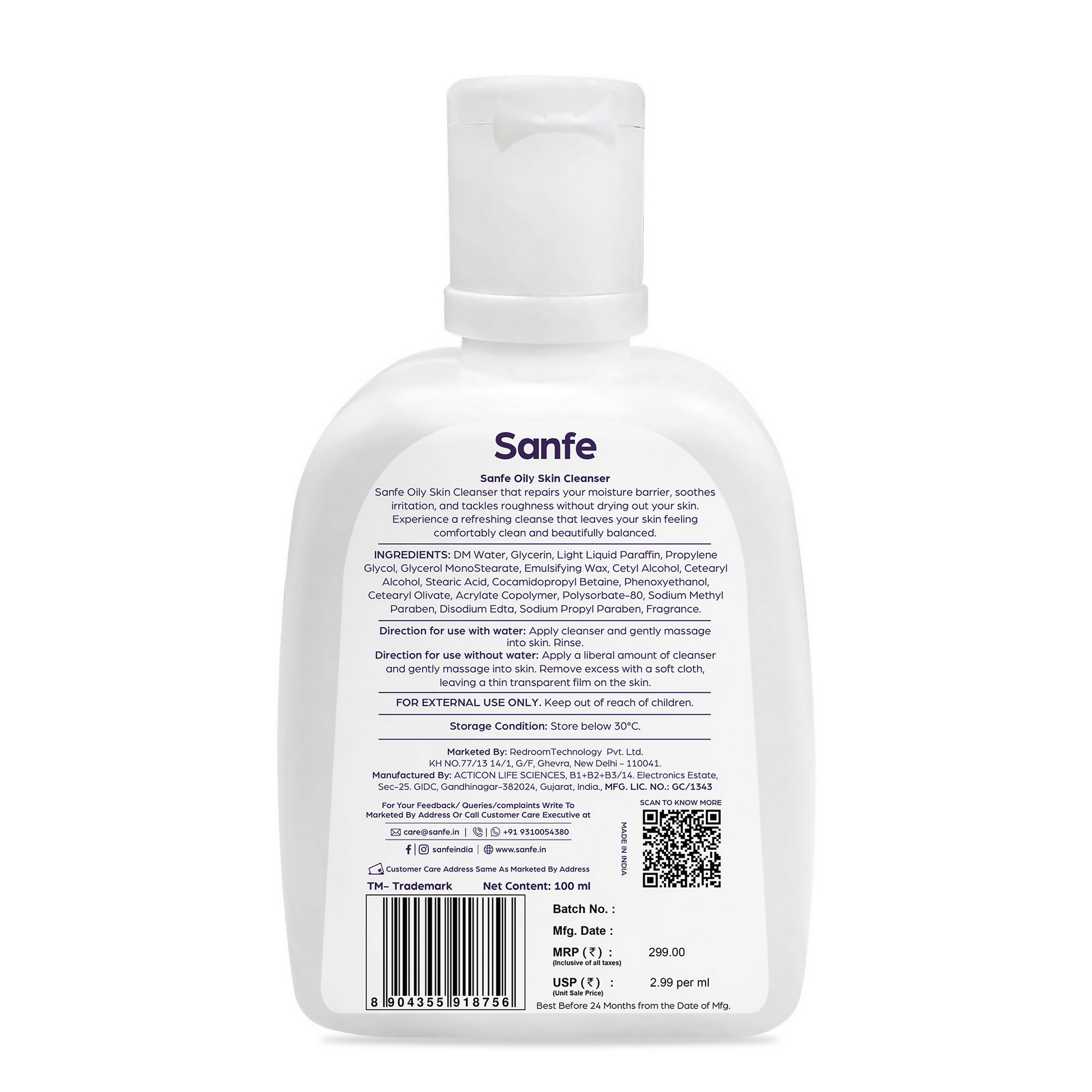 Gentle Yet Effective Cleansing: Sanfe Oily Skin Cleanser softly eliminates dirt, makeup, and impurities while providing a comprehensive cleanse.
