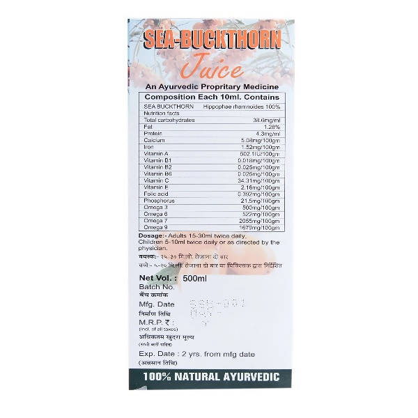 - Derived from the berries of the sea buckthorn plant, Sea Buckthorn Juice is a natural supplement renowned for its abundance of omega fatty acids, including omega 3, 6, and 9, as well as the exceptionally rare Omega 7. Often hailed as a Super Food for its myriad advantages, it is also a potent source of various vitamins like Vitamin C, Vitamin B, and Vitamin E, thus regarded as a Multivitamin.
