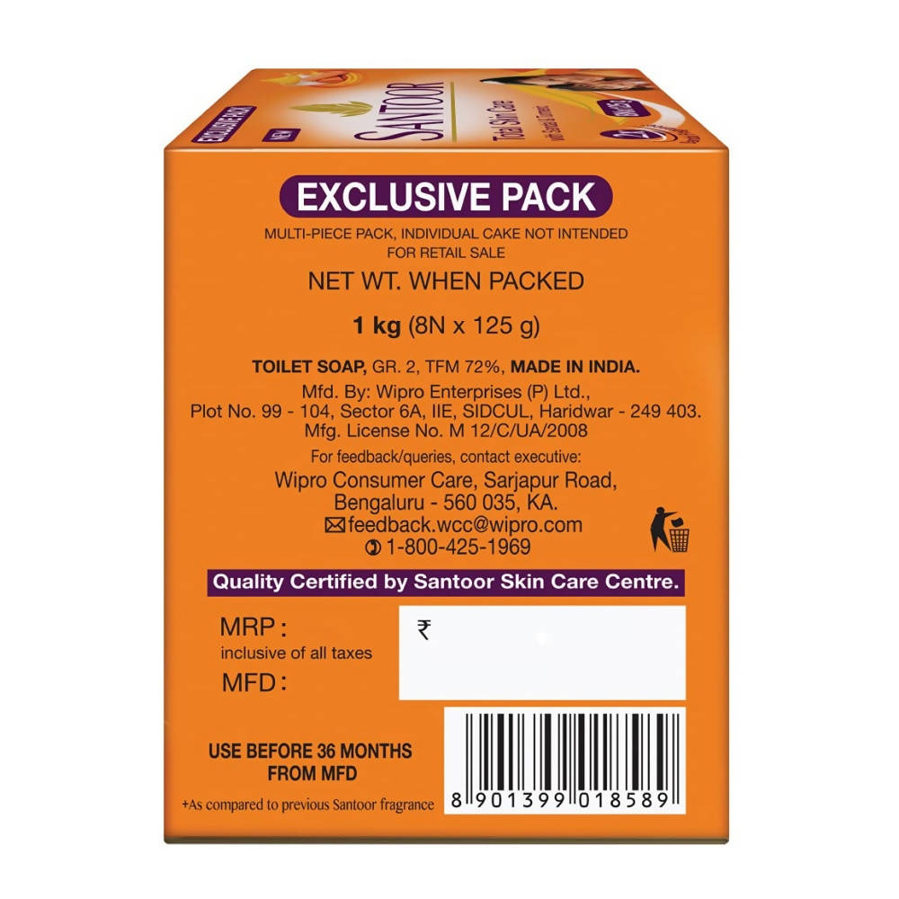 Santoor, once a traditional soap from South India, has evolved into a contemporary beauty product that holds the secret to youthful skin for women across various age groups. Sandalwood and Turmeric have been integral to the skincare routines of Indian women for generations. The soap's potent components of Turmeric and Sandalwood work to deliver smooth, soft, and clear skin while imparting a radiant, youthful glow. It features a fresh, invigorating, and enduring fragrance.