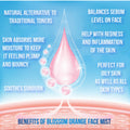 - The Blossom Orange Mist is a pure, 100% natural steam-distilled hydrosol that functions as both a mist and toner for your face and body. As a natural astringent, it balances the skin, restores pH levels, and regulates oil production. This Pure Blossom Orange Face Mist from SARVA by Anadi is derived from the natural waters produced during the steam distillation of orange essential oil from the peels of Citrus Aurantium, offering a refreshing citrus aroma.