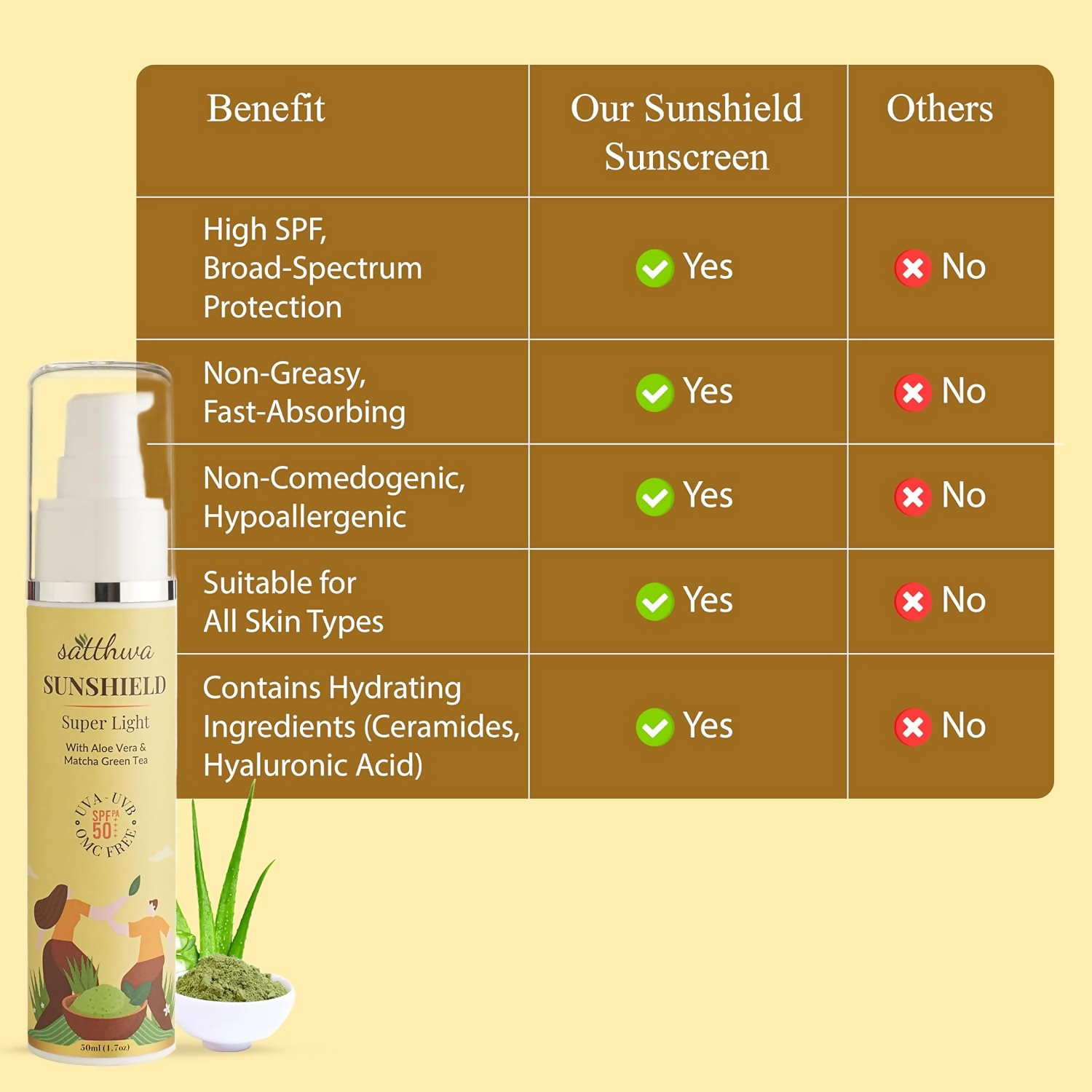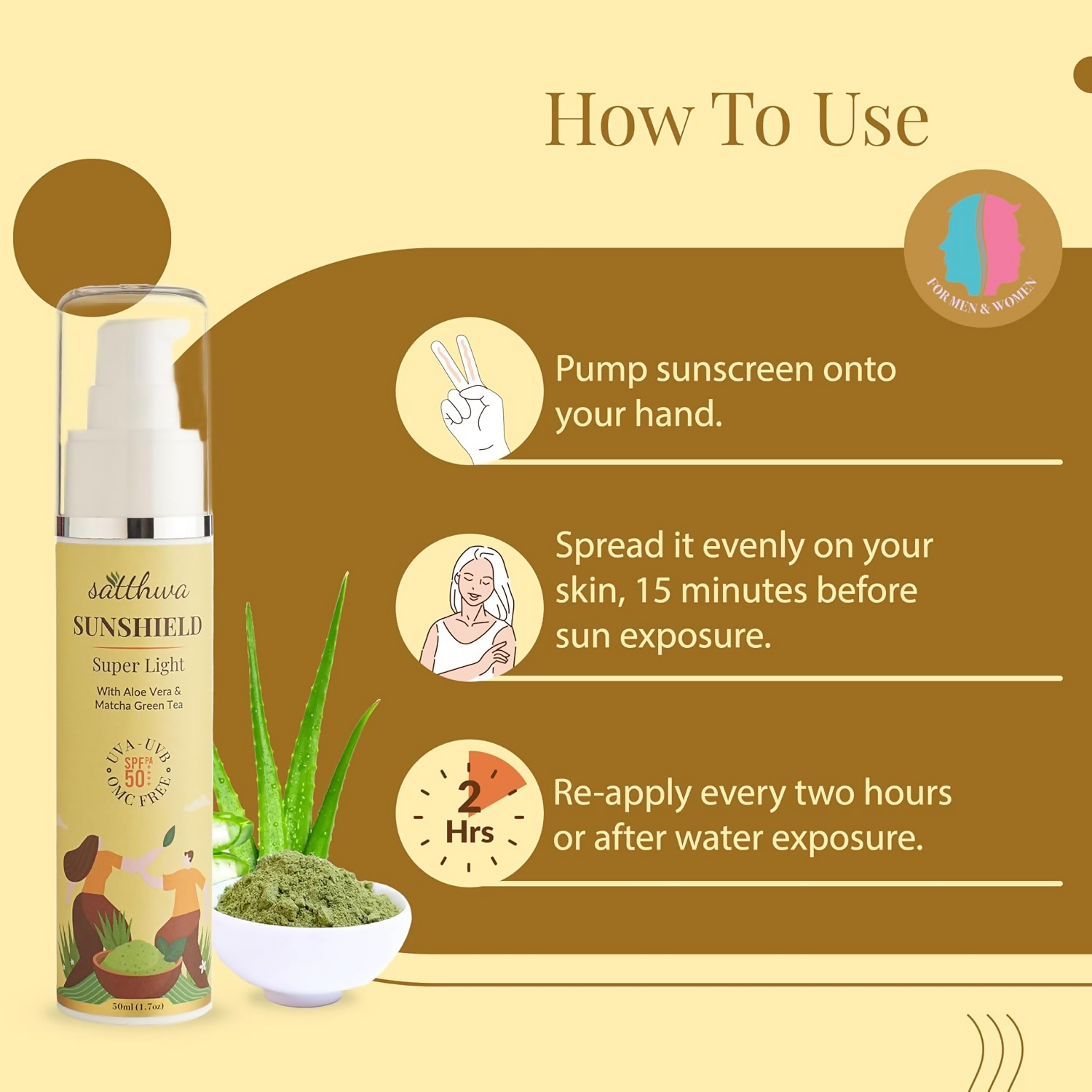 Satthwa Sunshield Super Light Sunscreen With Aloe Vera & Matcha Green Tea