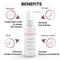 - Spray the hair vitalizer serum 4-5 times directly onto your scalp.