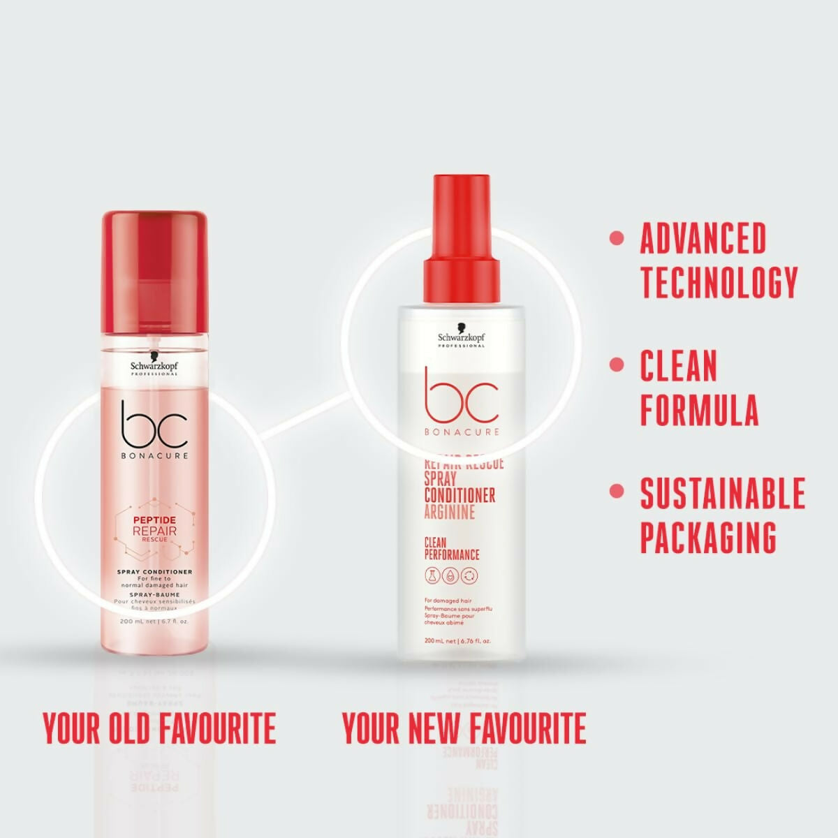 About the Product:- Schwarzkopf BC Bonacure Peptide Repair Rescue Spray Conditioner is a dual-phase leave-in formula that effectively blends potent ingredients to immediately enhance the texture of hair, making it smooth and pliable.