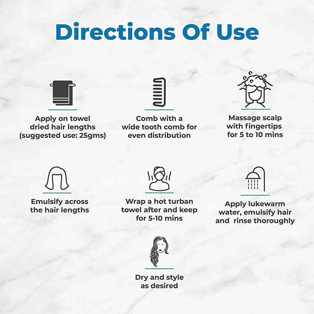 - Measure 25 grams of the masque. Apply it section by section on towel-dried hair lengths. Use a wide-tooth comb to distribute evenly. Massage the scalp gently with your fingertips for 5 to 10 minutes. Emulsify along the hair lengths using a downward milking motion. For optimal results, wrap a hot turban towel after emulsification and leave it on for 5-10 minutes. Rinse with lukewarm water, emulsify, and remove the masque with fingers. Rinse thoroughly and dry hair.