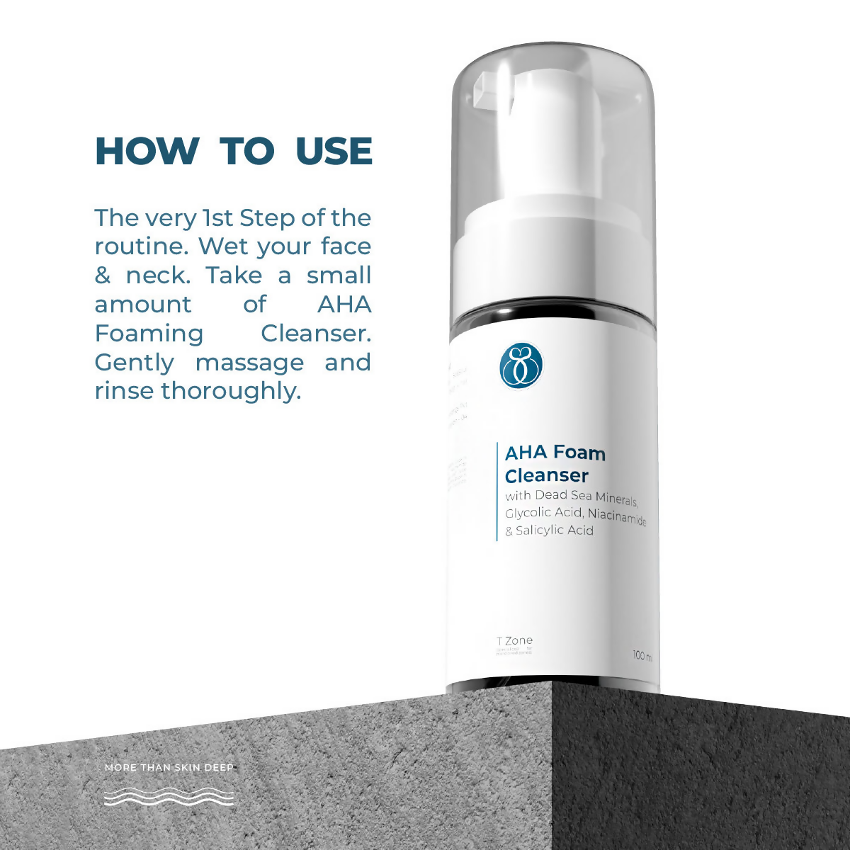 Moisten your face with lukewarm water. Dispense a small amount of foam cleanser onto your palm. Create a rich lather by rubbing your palms together. Gently massage the foam onto damp skin using circular motions. Focus on areas prone to oiliness or acne. Avoid contact with the eyes. Rinse thoroughly with lukewarm water. Pat your face dry with a clean towel. Follow up with your regular skincare routine. Use once or twice daily as instructed on the product label.
