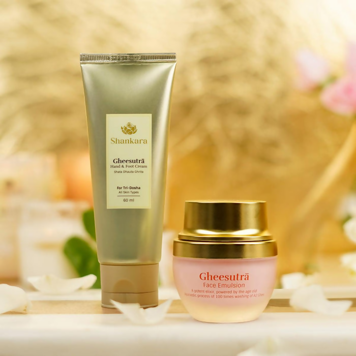 - Immerse yourself in a nurturing two-step regimen designed to shield and rejuvenate your face and body. This set features our highly acclaimed Gheesutrā Face Emulsion, recognized by Elle Beauty Awards for Best Conscious Beauty product, alongside the newly introduced Hand & Foot cream.