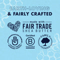 - Coconut Oil, Shea Butter, Sweet Almond Oil, Soybean Oil.