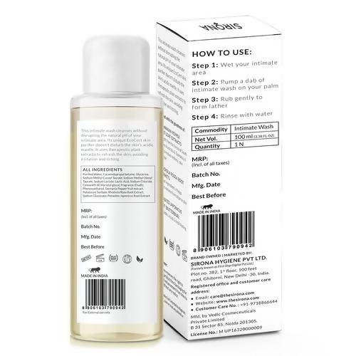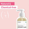 Sirona’s Refreshing Intimate Wash sustains the essential pH balance (3.5) of your intimate area and reinstates the skin’s acidic barrier with its unique EcoCert skin purifier. It stands out as potentially the first Intimate Wash to incorporate therapeutic plant extracts and genuine exotic oils, which assist in maintaining healthy Natural Intimate Flora and in curbing unpleasant odor, irritation, and itching.