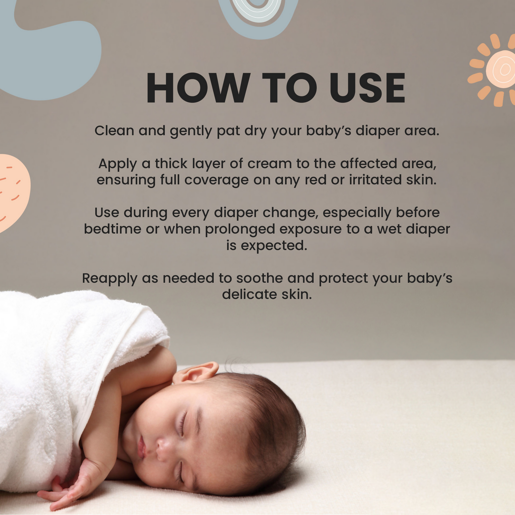 - Clean the diaper area with a wet wipe or a damp soft cloth and apply a generous layer of diaper rash cream