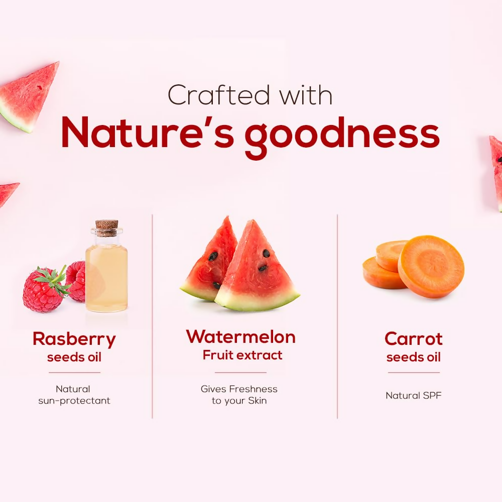 About the Product:- Superfood-powered protection: Skinella Watermelon Sun Screen harnesses the benefits of superfoods like watermelon and raspberry seed oil to naturally shield your skin from UV rays.