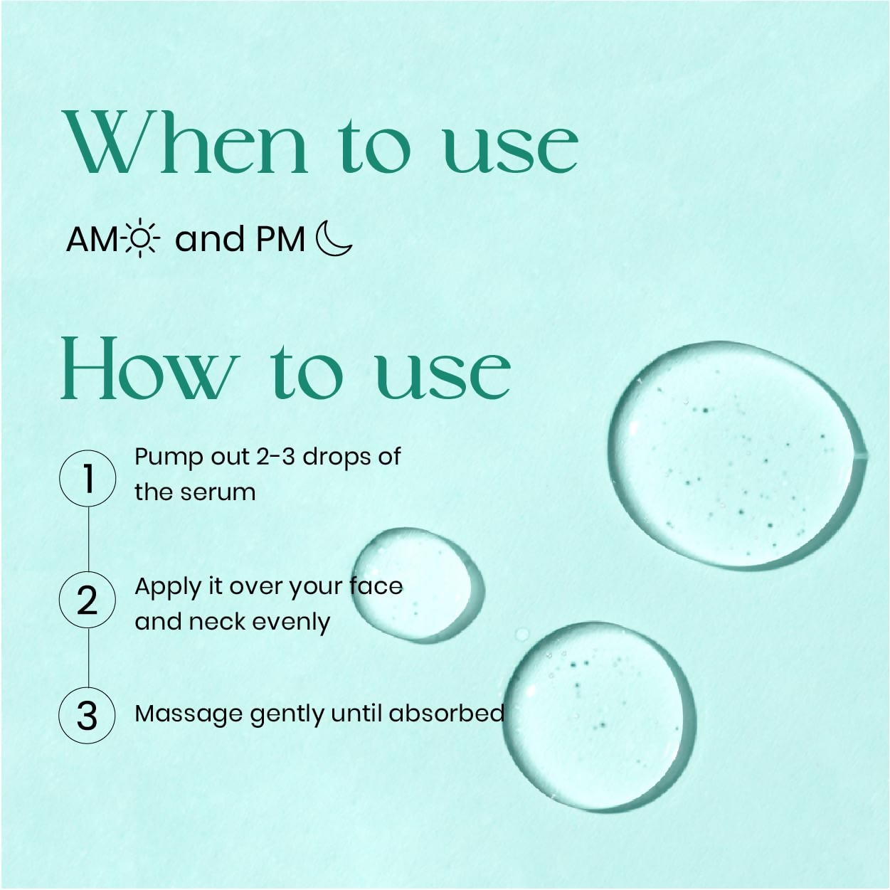 - Dispense 2-3 drops of serum and gently pat it onto the entire face and neck following cleansing and toning.