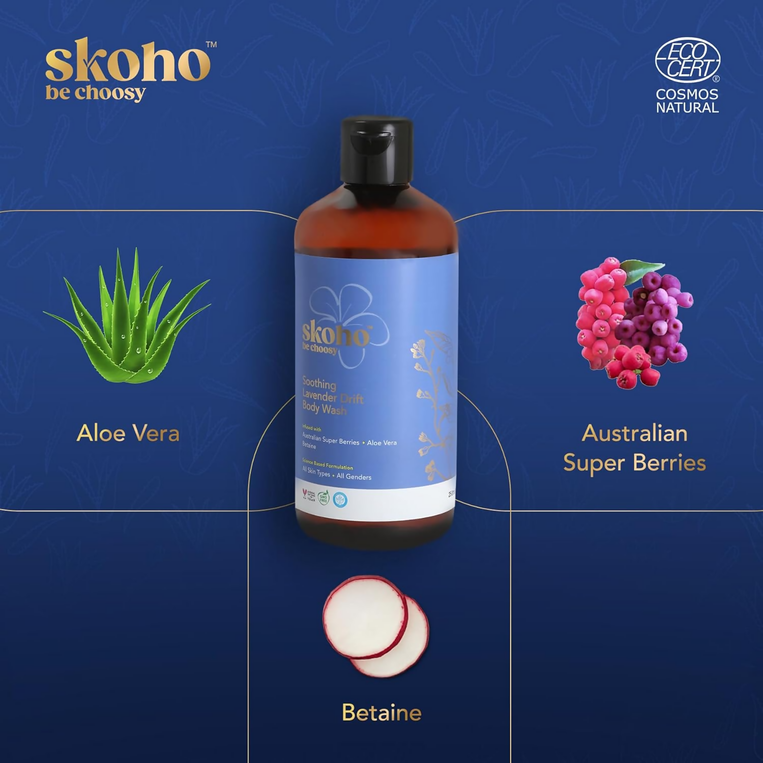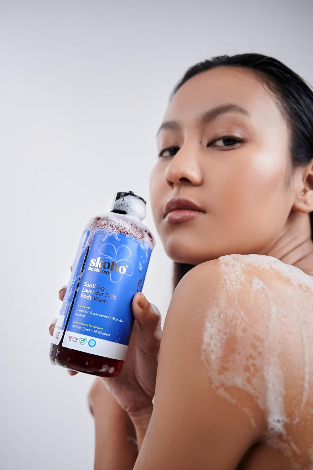 - Engage in a calming and mild cleansing experience. SKOHO Soothing Lavender Drift Body Wash effortlessly eliminates impurities without depleting the skin's natural hydration, fostering a balanced and nourished complexion.