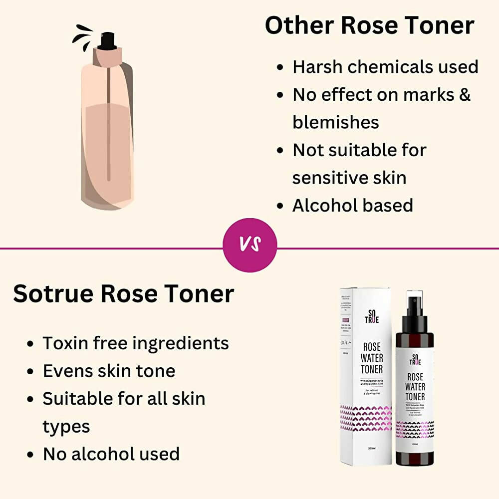 - Infused with aloe vera, cucumber, green tea, basil, and Bulgarian roses, our Sotrue Rose Water Toner is exceptionally beneficial and gentle on your skin. These components not only hydrate and rejuvenate the skin but also shield it from potential harm.