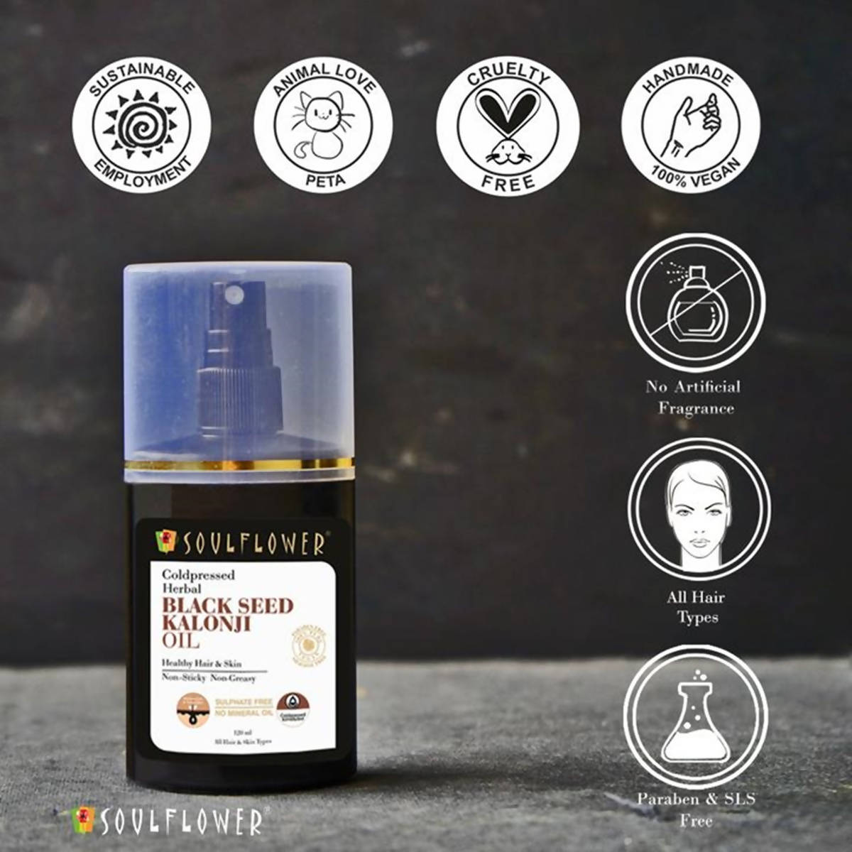 Soulflower Herbal Coldpressed Black Seed Kalonji Oil Healthy Scalp & Hair Non-Sticky, Non-Greasy: 120 ml