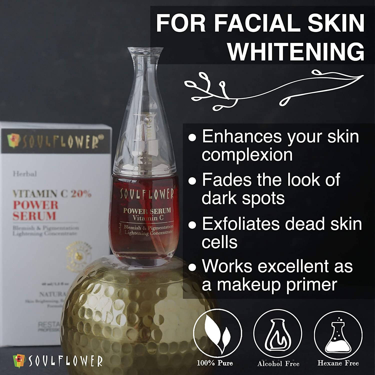 Soulflower Herbal Vitamin C Power Serum, Herbal Blemish And Pigmentation Lightening Concentrate: 40 ml