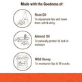 Crafted with Ayurvedic expertise, this lightweight and non-sticky lip gloss provides healing and hydration for dry, chapped lips while infusing essential nourishment. Enriched with the natural benefits of Almond Oil, Wild Honey, and Rose Oil, it offers deep moisture and care, leaving your lips soft and lustrous.