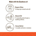 Ingredients: Butyrum (clarified butter), Ricinus communis (castor) oil, Sorbitan olivate, Isoamyl laurate, Copernicia cerifera (carnauba) wax, Euphoribia cerifera (candelilla) wax, Coco-caprylate/caprate, Theobroma cacao (cocoa) butter, Prunus dulcis (almond) oil, Mel (Honey), Cinnamomum camphora (camphor) powder, Tocopherol
