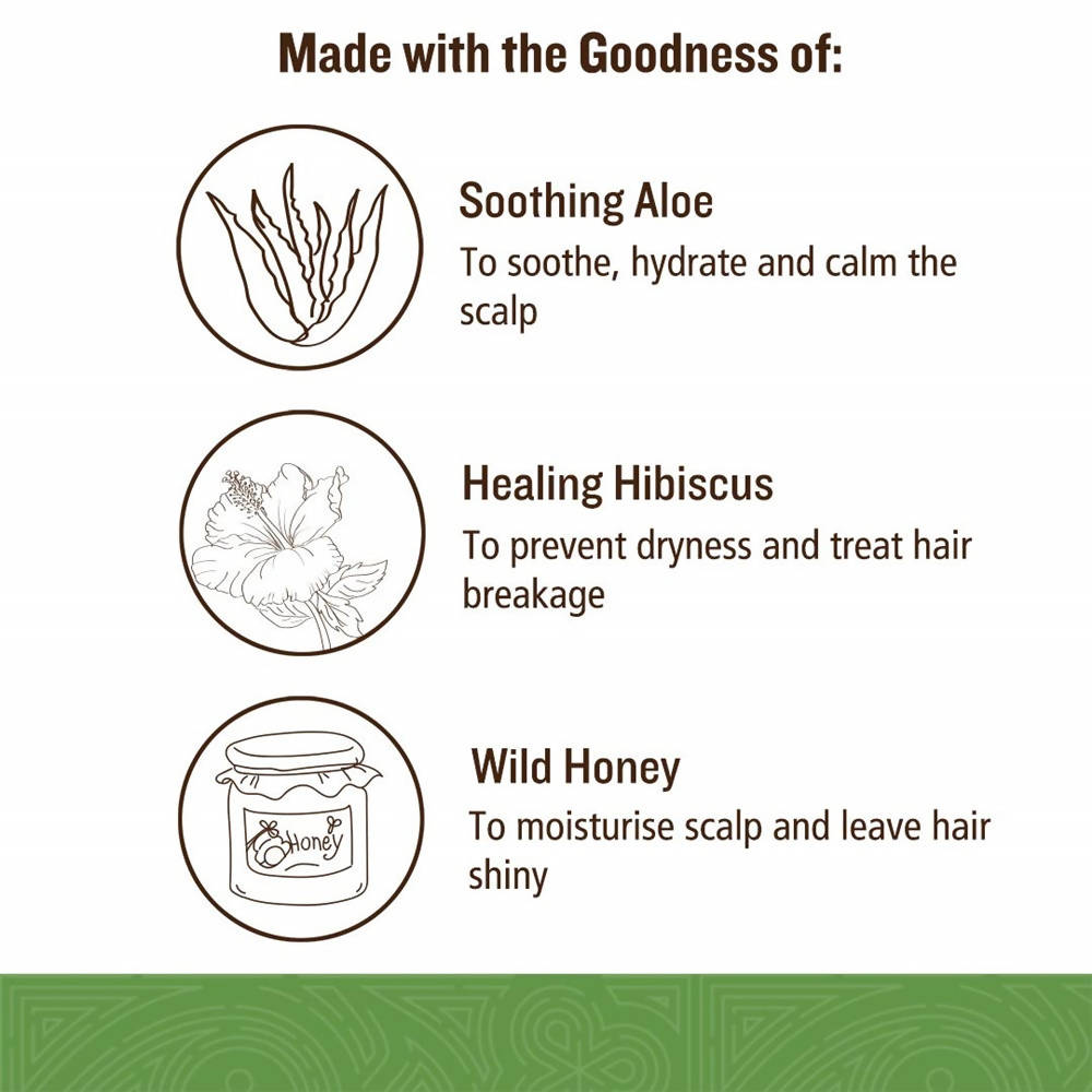 This moisturizing conditioner is prepared with fresh Hibiscus that leaves hair beautifully soft while reducing frizz. Extra Virgin Coconut Oil and Organic Shikakai restore moisture while the rich and potent formula nourishes the scalp and adds volume to your hair.
