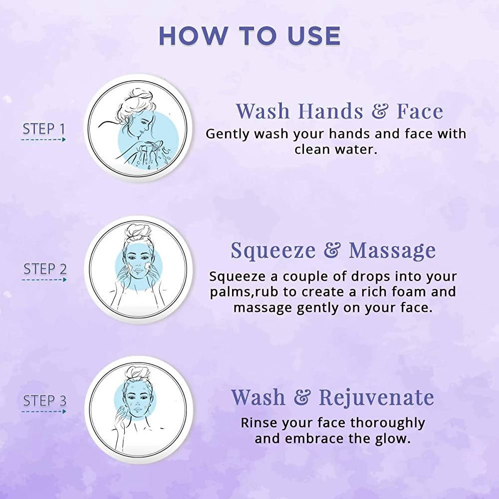 - Step 2: Dispense a few drops of the moisturizing face wash into your palms, lather to form a luxurious foam, and gently massage it onto your face.