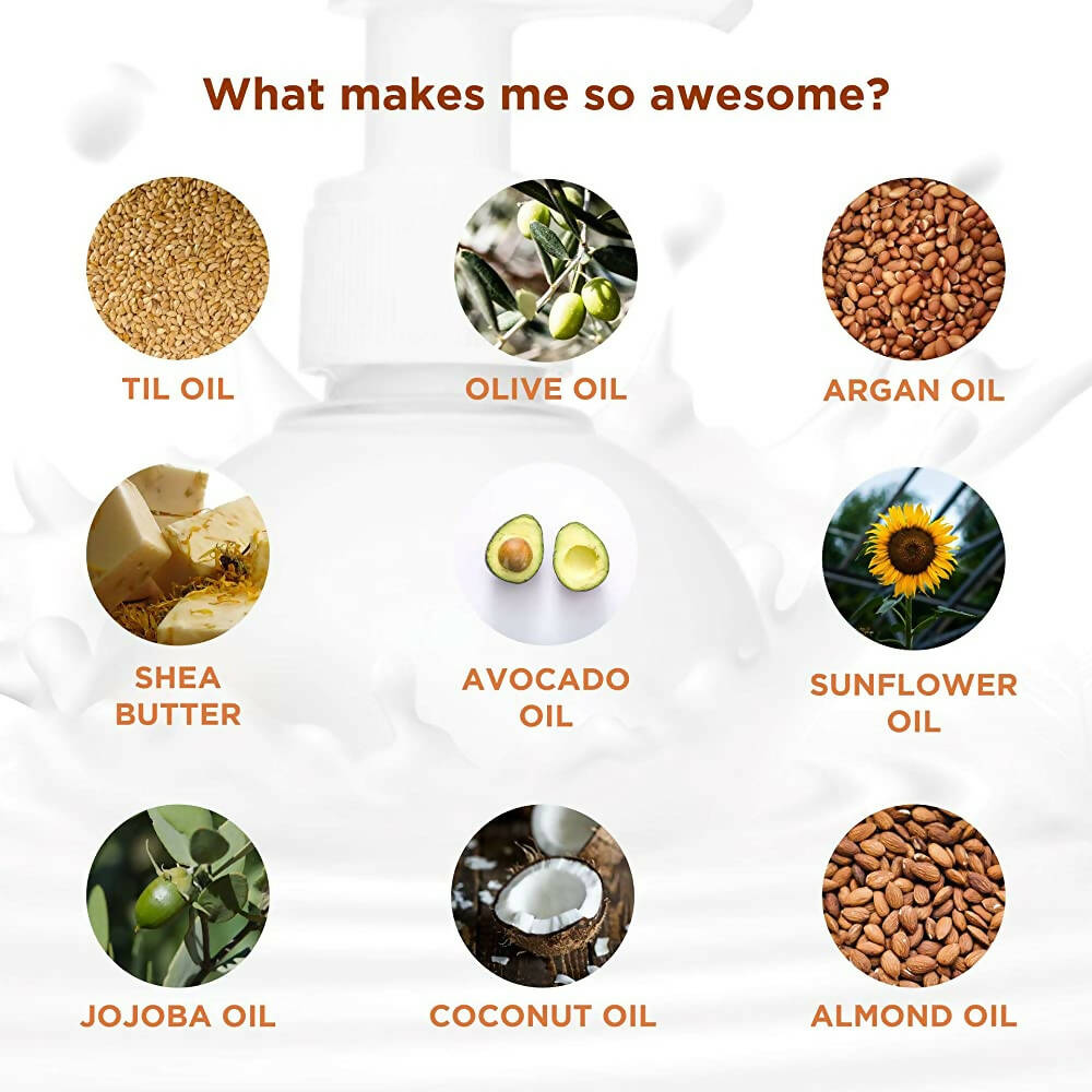 Ingredients:- Essential & Botanical Oils of Argan, Almond, Jojoba, Olive, Coconut, Til, Sunflower, Butters - Avocado, Shea