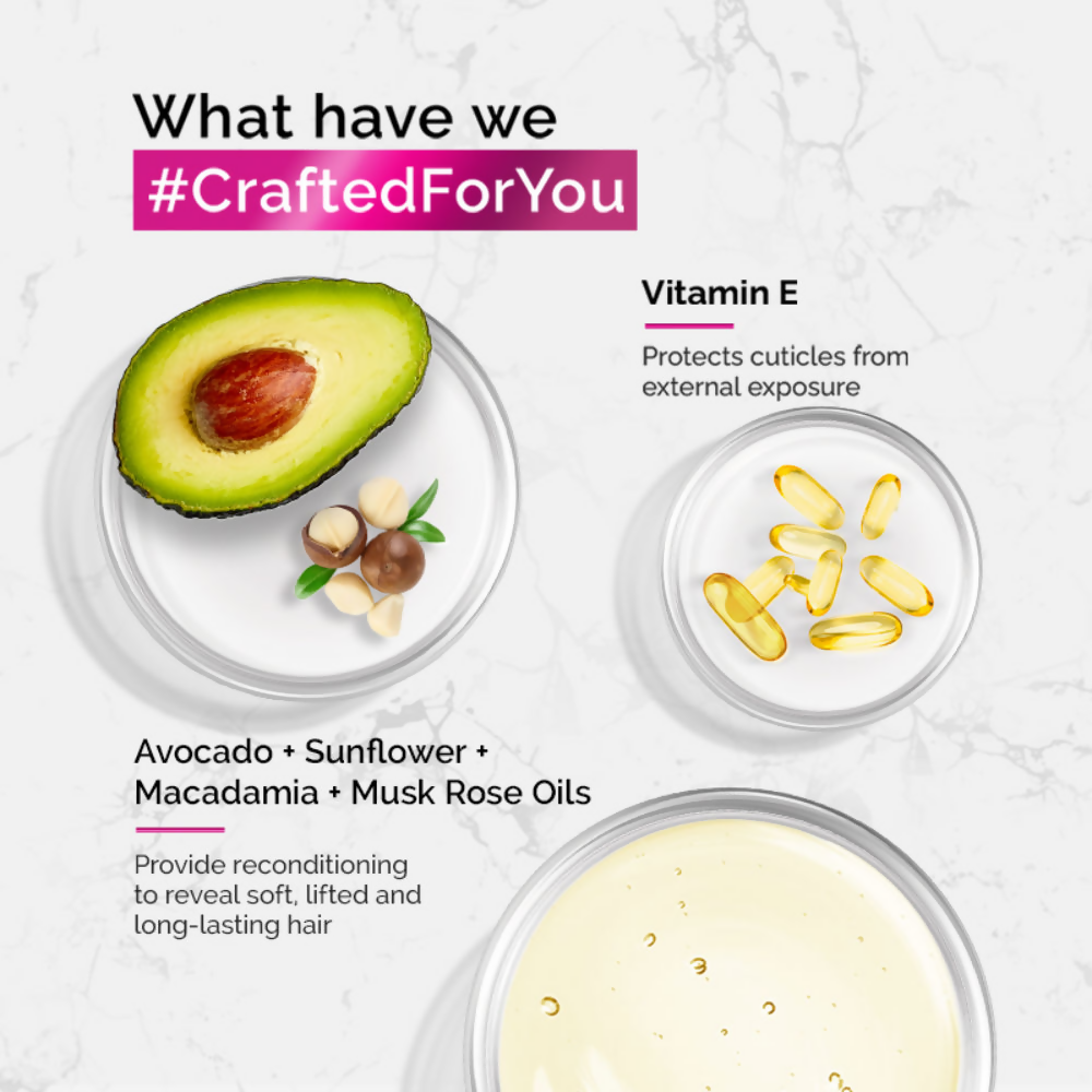 Usage Instructions:- Dispense a small amount of the serum into your hands and distribute it evenly throughout damp or dry hair.