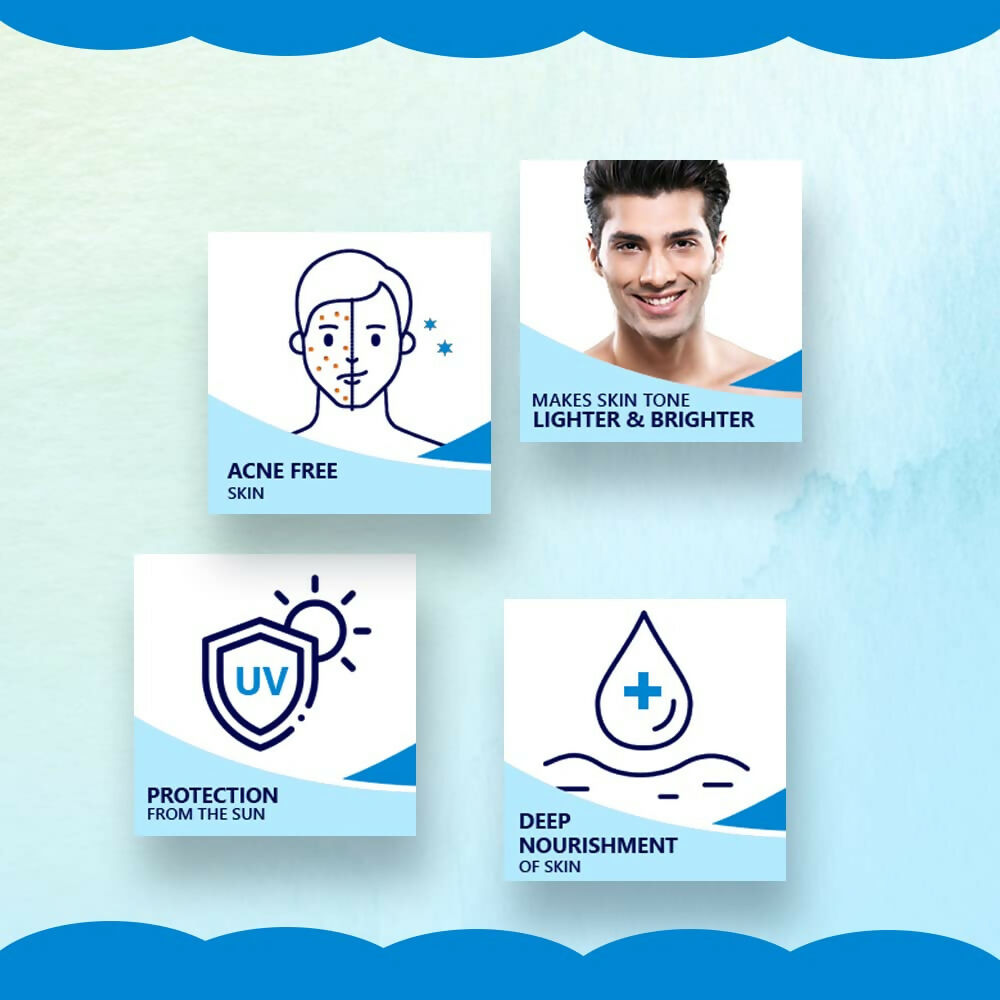 About the Product:This Fairness Cream is tailored for men with various skin tones, enhancing complexion, diminishing dark spots, offering sun protection, and serving as an outstanding moisturizer. The natural constituents bestow a glow and fairness to the skin. Chamomilla acts directly on melanin-producing cells to lighten the skin tone. Witch Hazel & Aloe Vera contribute to making the skin appear healthier, fairer, brighter, and free from acne.