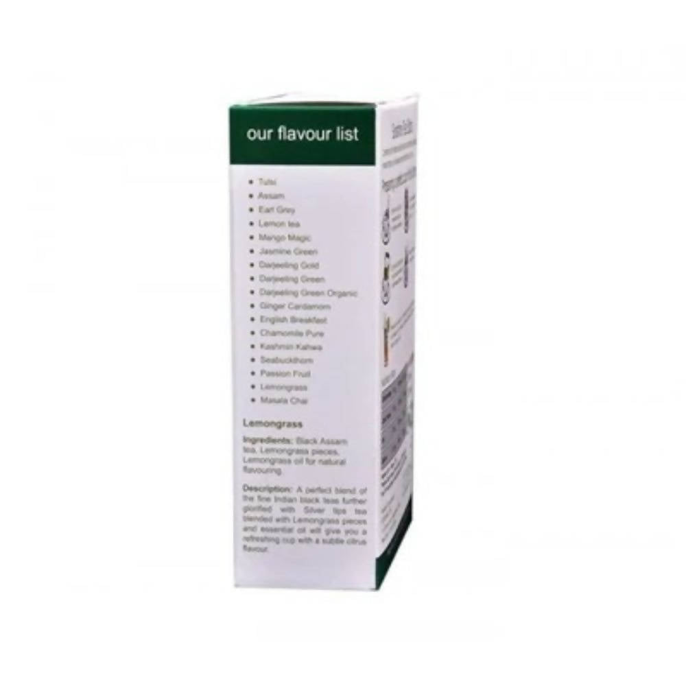 - Black Assam tea, Lemongrass pieces, Lemongrass oil for natural Flavoring.