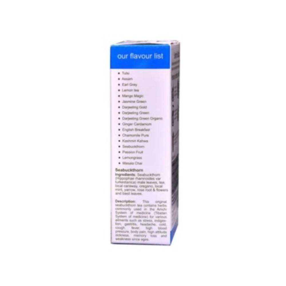 - Seabuckthorn, male leaves tea, local caraway, oregano, local mint, yarrow, rose root, flowers, basil leaves.