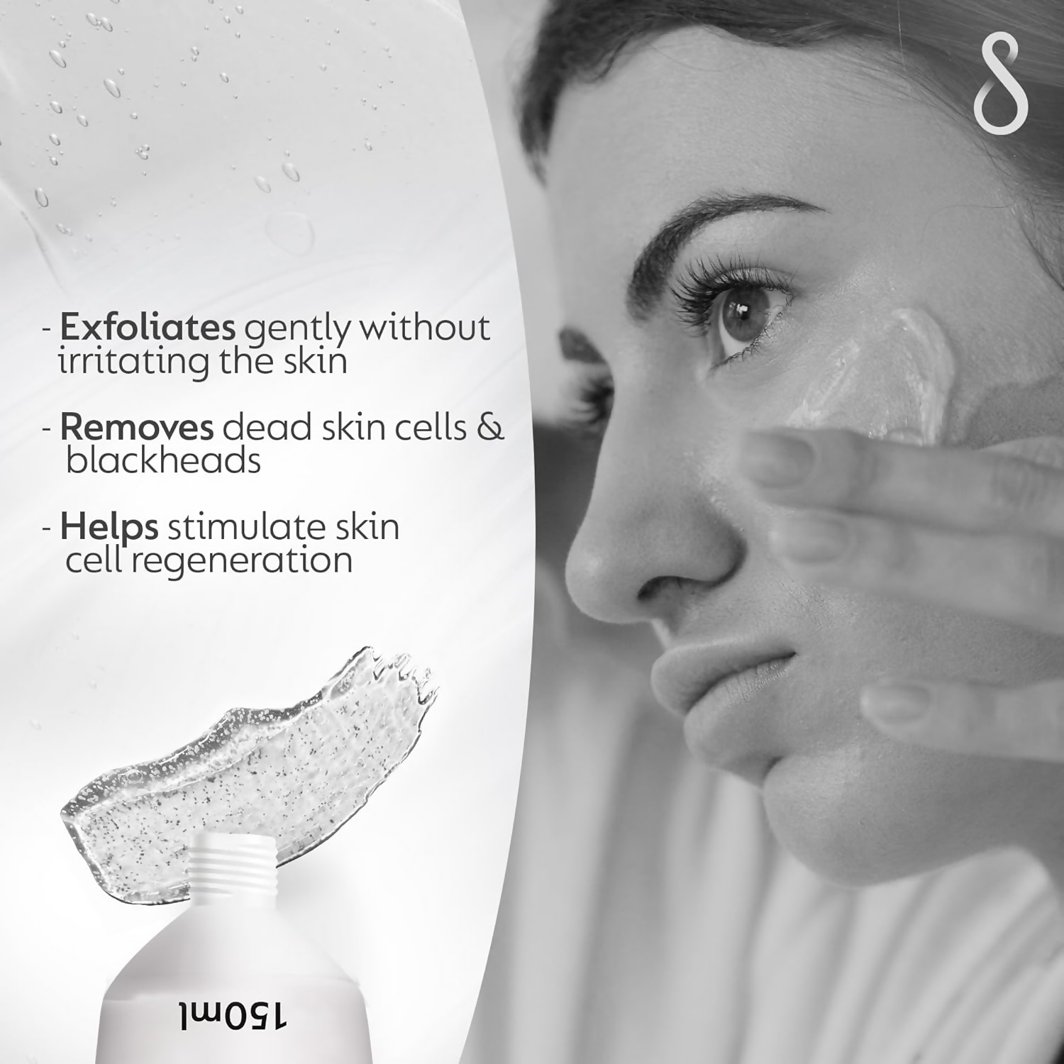 - By gently exfoliating, it clears away dead skin cells and blackheads, leaving your skin clear and radiant.