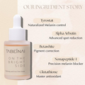 About the Products:- Enhance your skincare regimen with Tabeinai's On the Bright Side Brightening and Even Tone Serum, an elegant formula crafted to unveil your skin's inherent luminosity. Enriched with a powerful combination of peptides, amino acids, and brightening components sourced from top laboratories worldwide, this serum addresses hyperpigmentation, dark spots, and uneven skin tone. Discover the advantages of a more luminous, uniform complexion with ingredients that collaborate to shield against environmental harm, boost hydration, and foster a youthful radiance. Lightweight and non-greasy, this serum is suitable for every skin type and ideal for daily use.