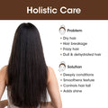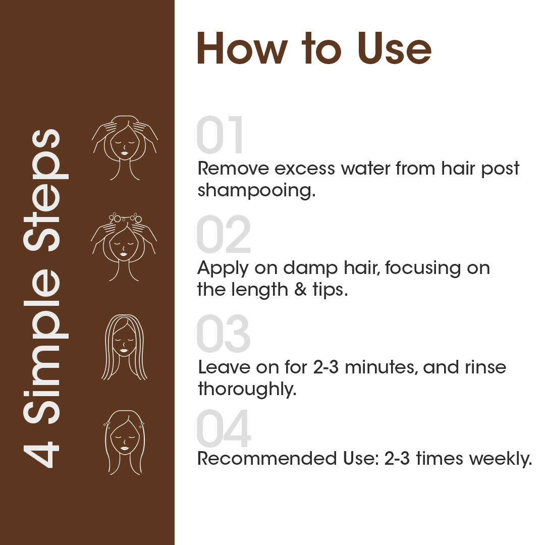 - Smoothens texture, reduces breakage, minimizes hair fall, and enhances shine and moisture.