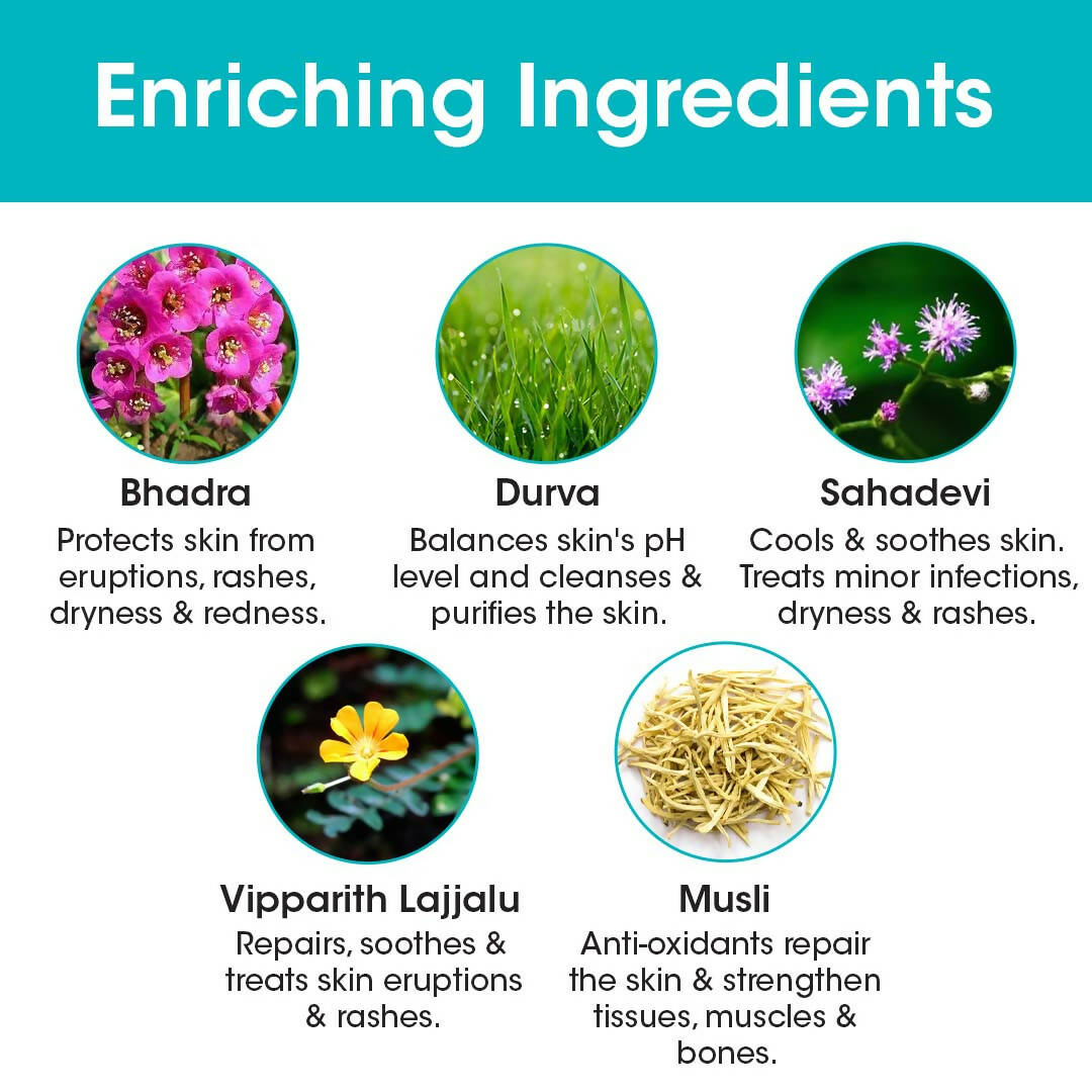 - Infused with Ayurvedic elements, it ensures your baby's skin remains soft, hydrated, pristine, and nourished.