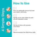 - Its luxurious formula calms the baby's body while effectively removing dirt and impurities.