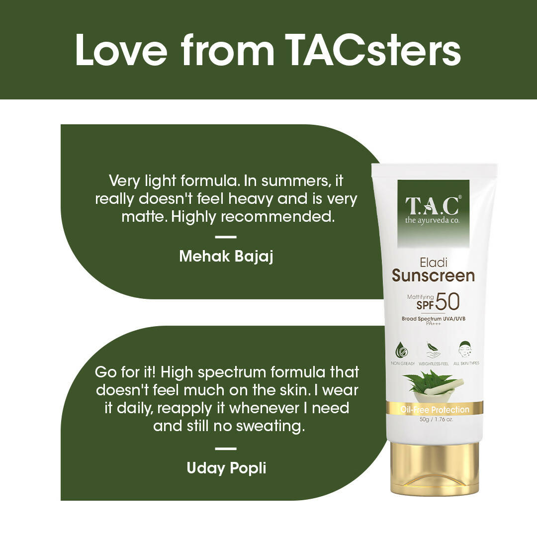 TAC - The Ayurveda Co. Eladi Sunscreen, Mattifying SPF 50 & PA+++, for Women & Men