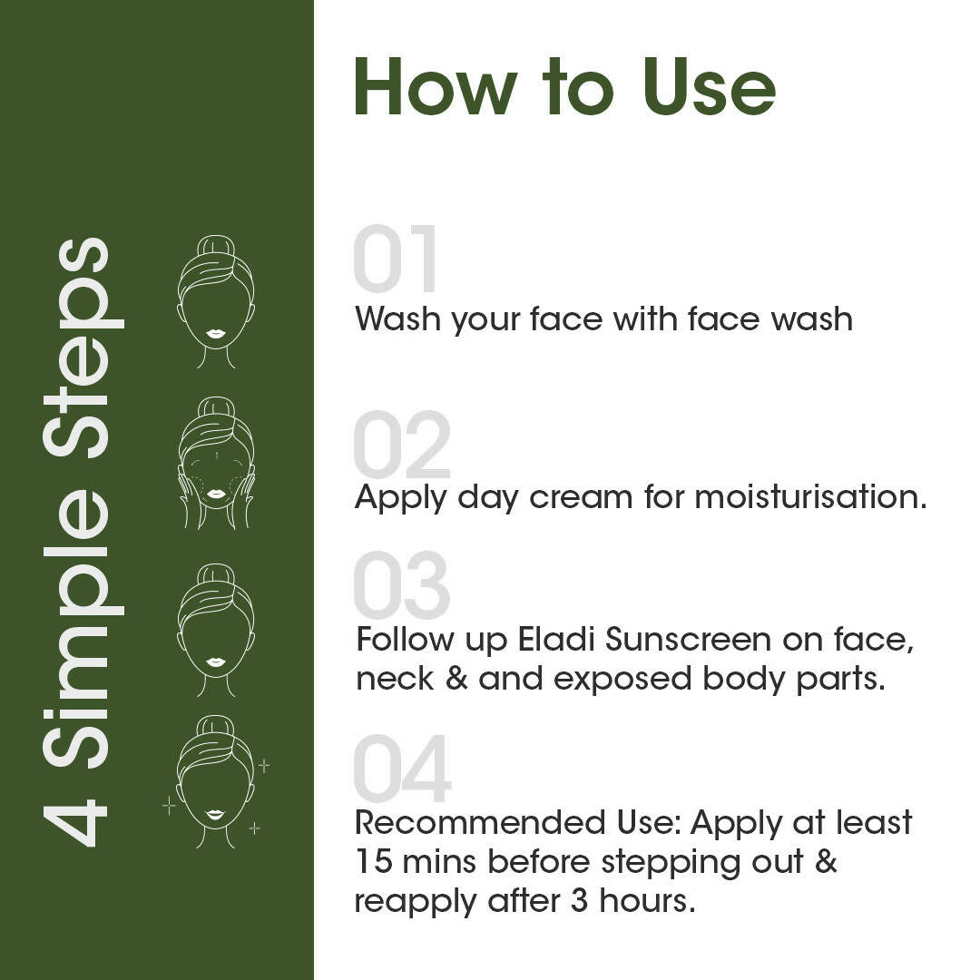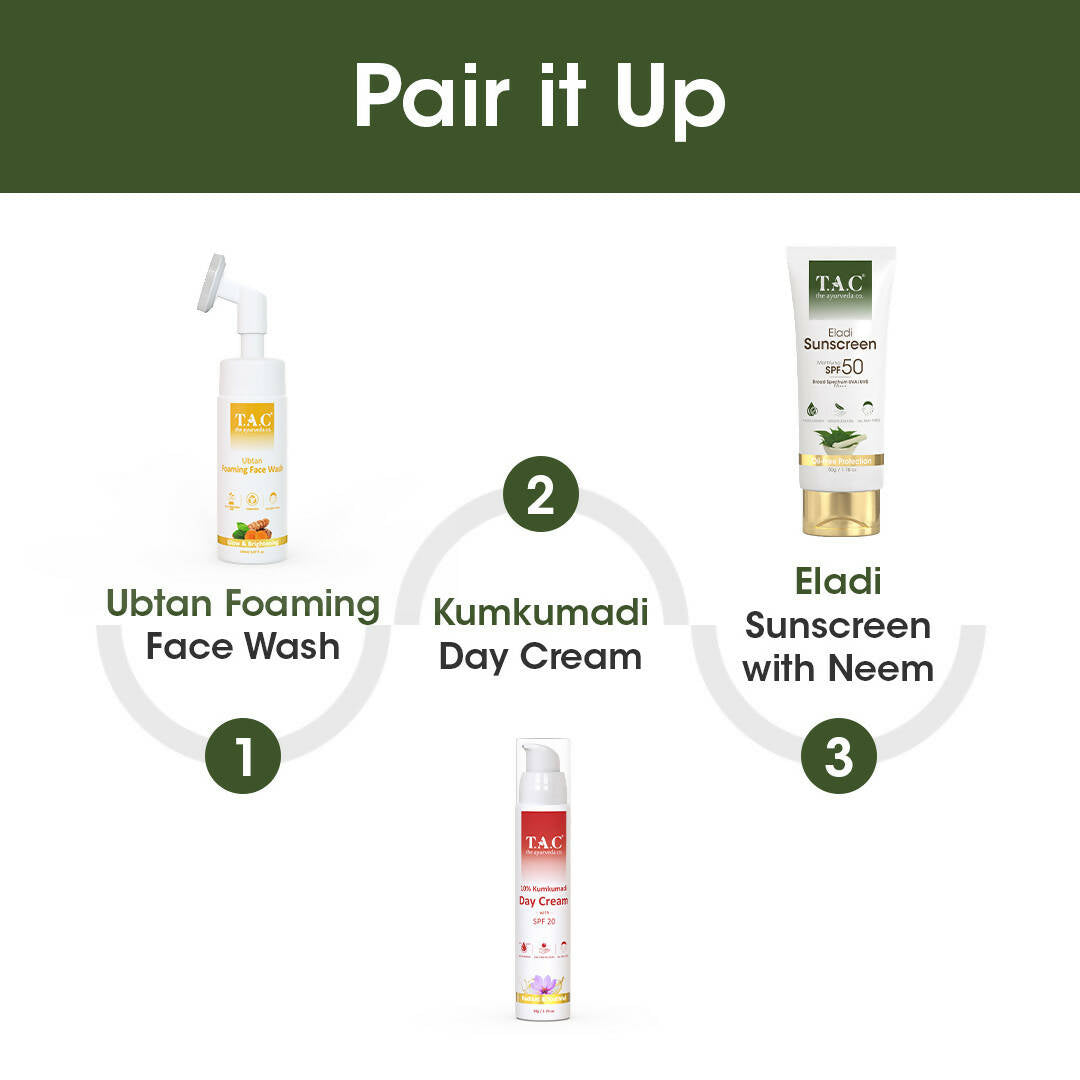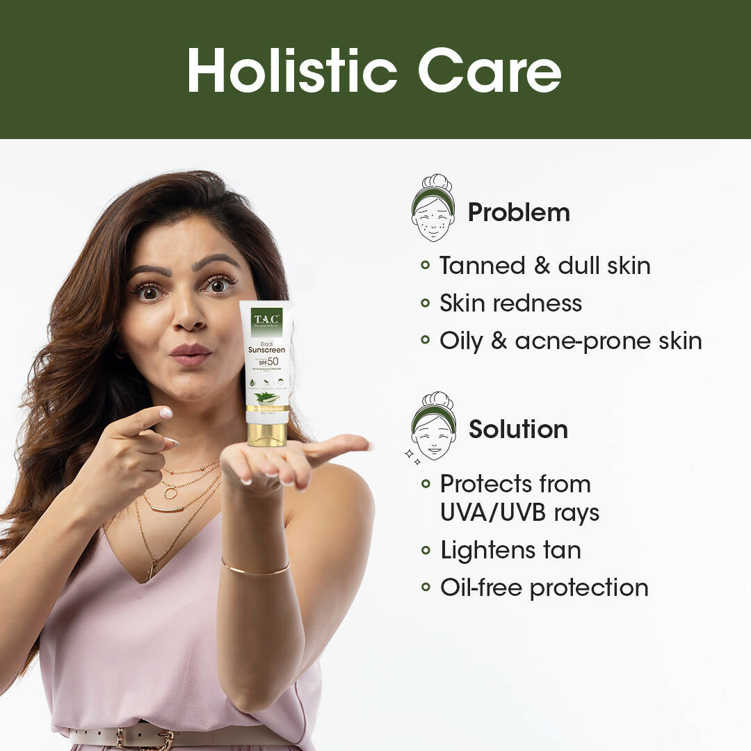 - T.A.C Eladi Sunscreen with Neem boasts an SPF 50 PA+++ that protects your skin from detrimental UVA and UVB rays. It also helps in preventing skin aging and tanning.