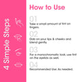 - Effortless application: simply dab it onto your lips and cheeks, then blend with a brush or fingertips to achieve an alluring and elegant appearance. This lip and cheek tint feels exceptionally light and natural on the skin.