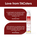 - T.A.C 10% Kumkumadi Day Cream with SPF 20 is an ayurvedic blend that swiftly penetrates the skin, providing hydration and nourishment throughout the day. Incorporate it as a daily moisturizer in your skincare routine to enhance your skin's vitality.