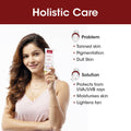 - Applying Kumkumadi sunscreen lotion diminishes the risk of skin redness and irritation and is appropriate for all skin types.