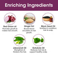 - This potent Ayurvedic combination of Onion & Ginger stimulates faster hair growth and overall vitality. It enhances circulation, resulting in hair that is thick, lustrous, and promotes growth.