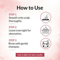 - Dispense a small quantity of oil and gently massage into the scalp using your fingertips.