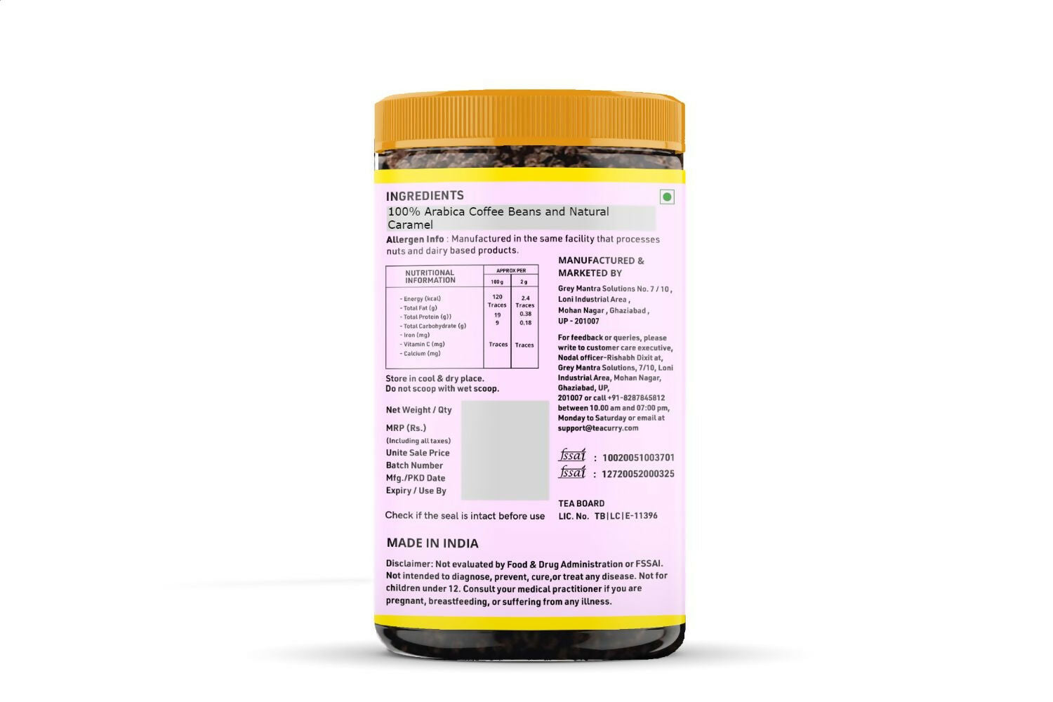 Ingredients:Teacurry's Caramel coffee is meticulously crafted with premium 100% Arabica beans, infused with natural caramel to offer a truly delightful experience with every sip.