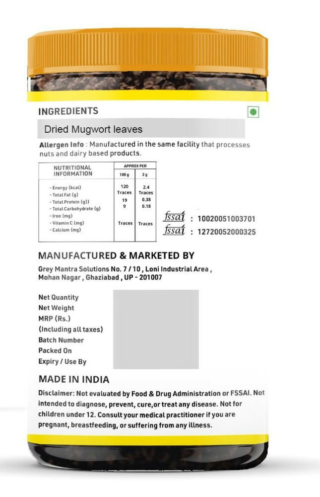 Introducing our premium organic Mugwort Leaves, a natural healing herb for digestive wellness and stress relief. Harvested from the finest organic sources, our dried Organic Mugwort Leaves are meticulously selected to ensure the highest quality. Immerse yourself in the numerous benefits of organic Mugwort leaves as you discover the soothing properties of this ancient herb. Known for centuries, organic Mugwort dried leaves have been celebrated for their exceptional qualities. Experience the best Organic Mugwort leaf tea with our carefully crafted blend of dried Organic Mugwort leaves. Sip on the natural goodness that comes with mugwort tea fresh leaves, and let its calming effects ease your stress and promote overall well-being. The benefits of Organic Mugwort leaves extend beyond stress relief to encompass digestive wellness. Our naturally sourced organic Mugwort tea loose leaf is a delightful way to incorporate this herbal into your daily routine. Indulge in the best Organic Mugwort leaves with our organic and naturally harvested product. Embrace the holistic approach to health with Mugwort leaves benefits that have stood the test of time. Whether you prefer organic Mugwort loose-leaf tea or explore other Mugwort leaf uses, our product ensures a premium experience. Elevate your self-care routine with the richness of Artemisia vulgaris leaves, and discover the natural wonders that lie within each sip. Choose the best Organic Mugwort leaves for a rejuvenating and soothing herbal infusion.