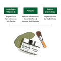 Indulge your senses with the refreshing Matcha Detox Clay Mask. Incorporate it seamlessly into your weekly skincare regimen. Purge impurities (pollutants, excess oil) and unveil a radiant glow & silky smooth skin after a brief session with this clay mask. The invigorating tea aroma whispers “SERENITY” as you relax. The blend of matcha and French green clay gently purifies & exfoliates tired skin, revitalizing your complexion.