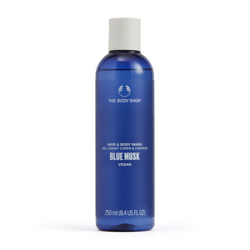 - Hop in the shower (or bath) and squeeze out a dollop of our Blue Musk Hair & Body Wash.