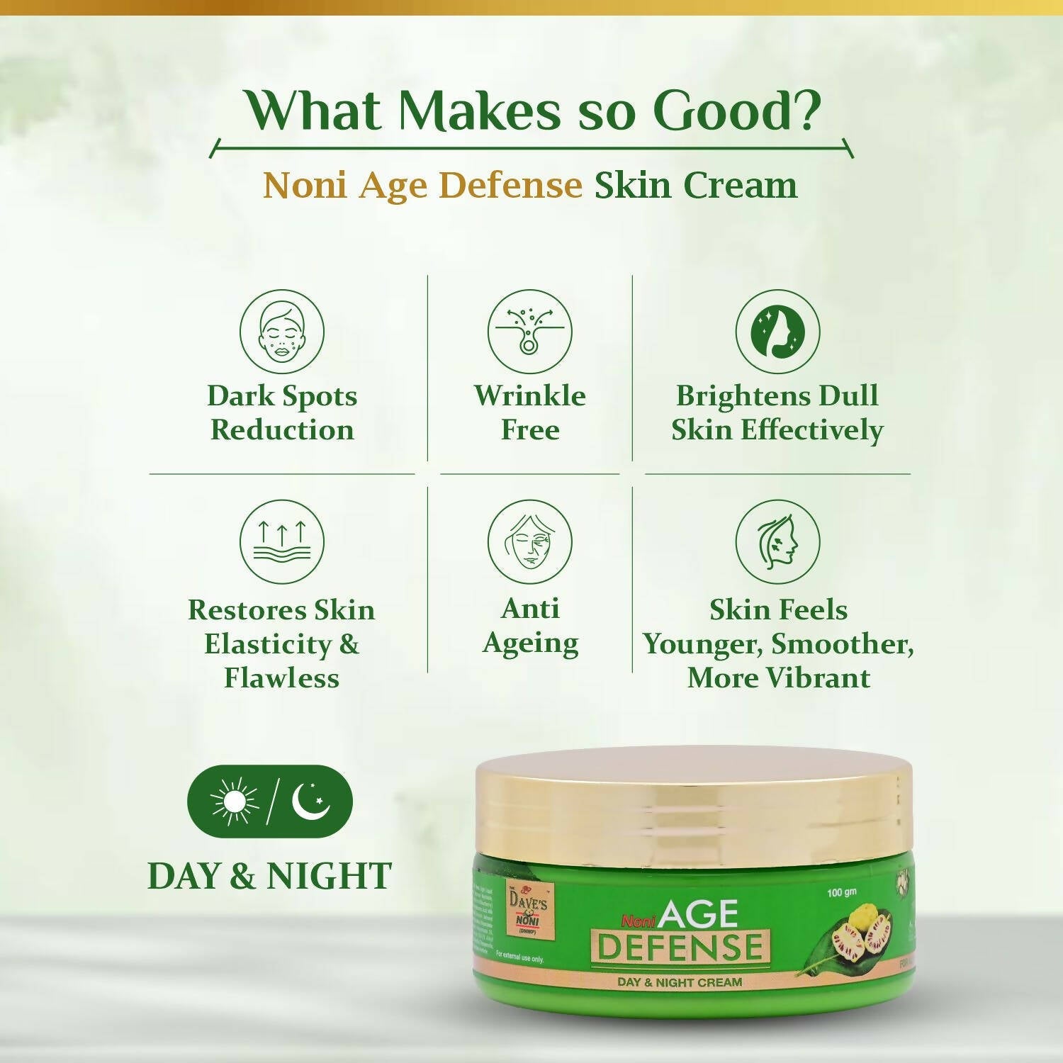 - Dave's Noni Age Defense Day & Night Cream is a daily moisturizing solution offering numerous benefits for your skin. Enriched with Noni extract, it is celebrated for its age-defying qualities and ability to enhance your skin's overall appearance.