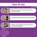 - Apply 2-3 drops to cleansed, toned skin in the morning and evening.