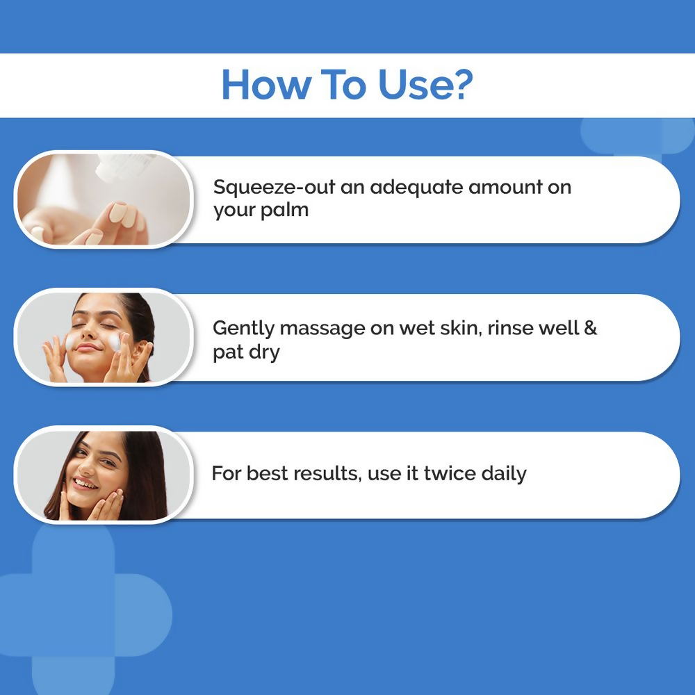 - Step 2: Gently massage onto damp skin, rinse thoroughly & pat dry