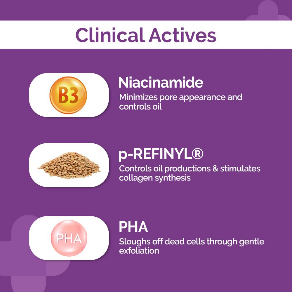 - Effortlessly refine visible pores, manage excess sebum, and clear out pore blockages with the Pore Minimizing Face Serum. Crafted with 4% Niacinamide and p-REFINYL, this unscented serum diminishes the look of enlarged pores and encourages collagen production. But that's not all! Featuring a mild exfoliant - 5% PHA, the Pore Minimizing Face Serum enhances cellular renewal and helps prevent pore sagging with regular application.