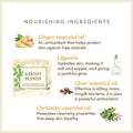 - Saponified natural glycerin, essential oils of Ginger, Clove, and Coriander