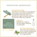 - French green clay, tea tree essential oil, saponified pure natural glycerin, aqua Giovanni natural fragrance